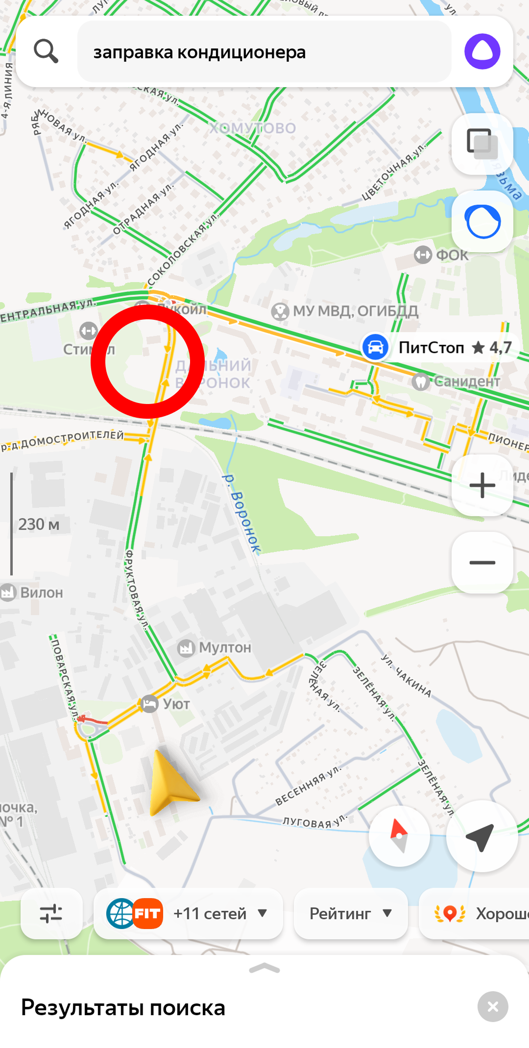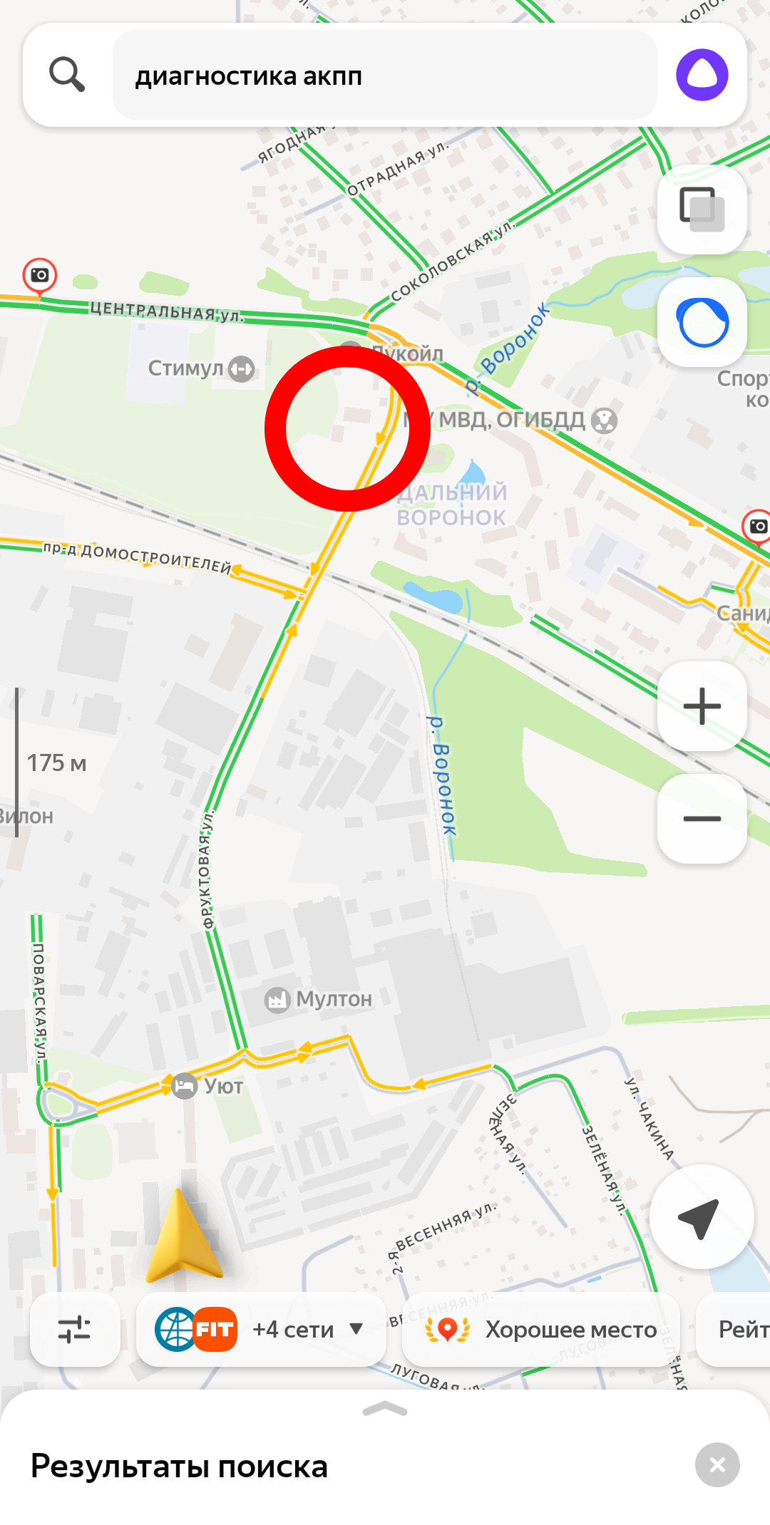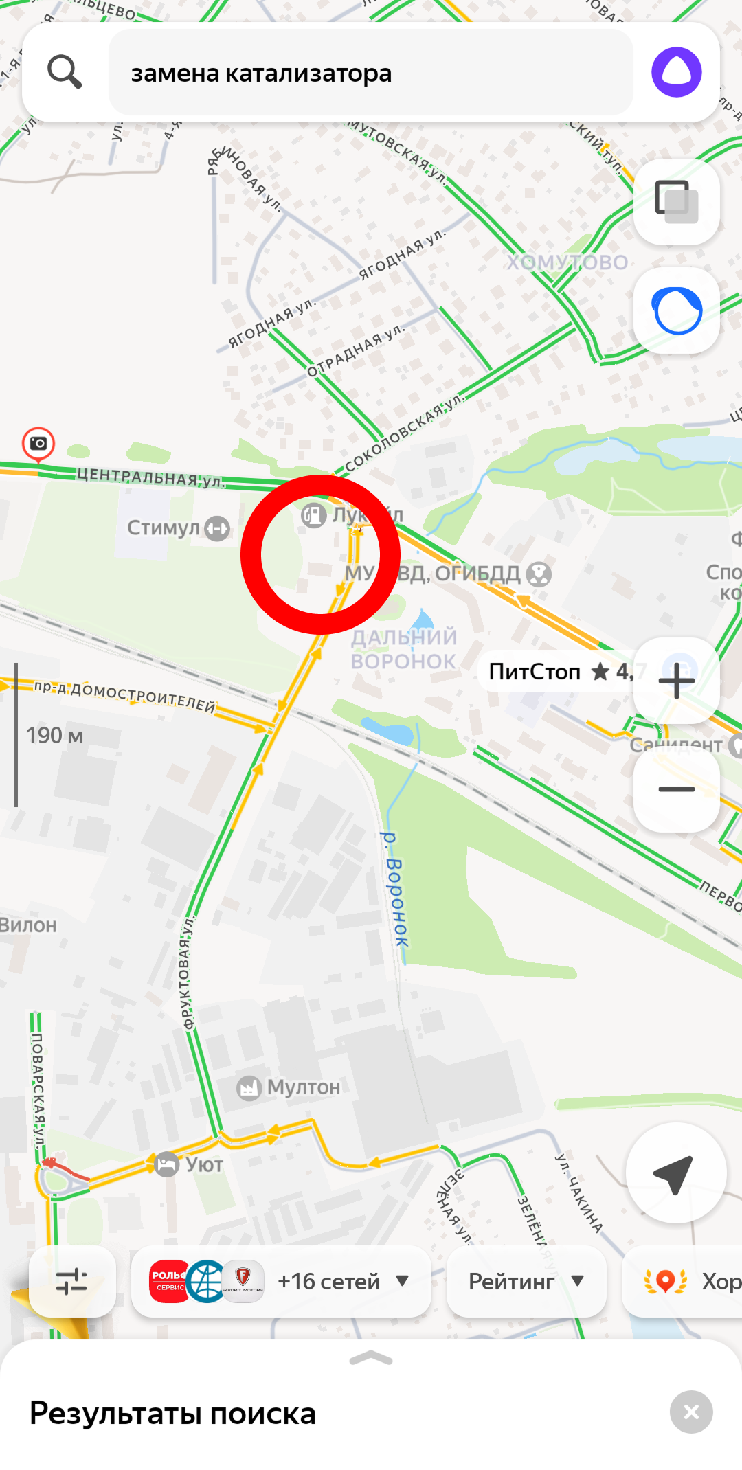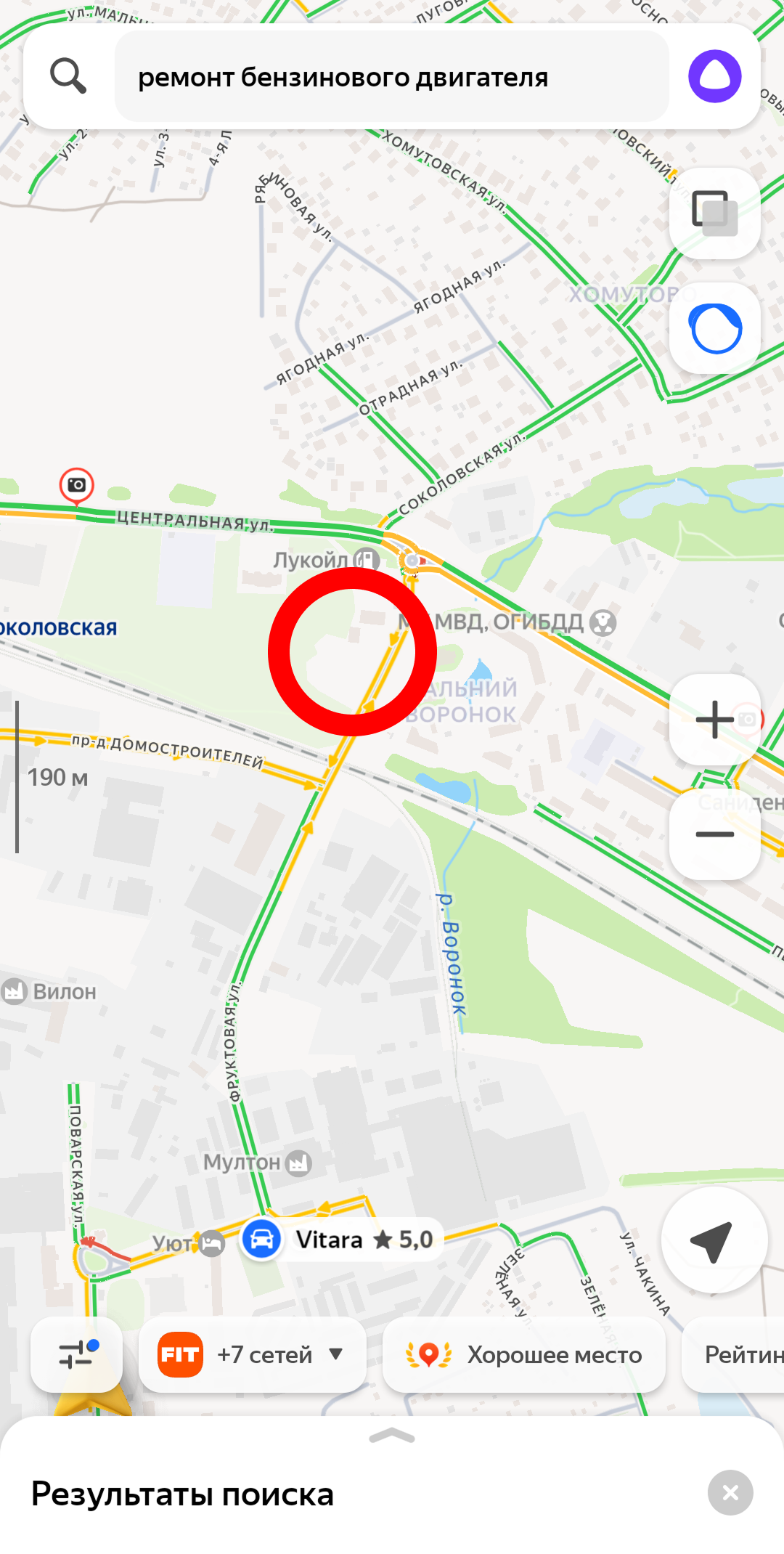 (фото ниже, в красной рамке на карте находится автосервис, по запросу его не видно)